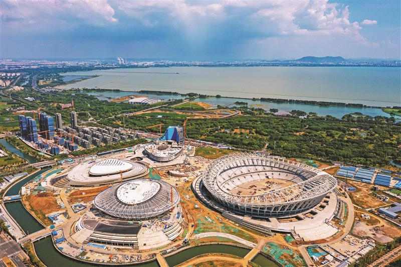 無錫奧體中心體育場環(huán)索已就位,體育場整體外觀已清晰可見。