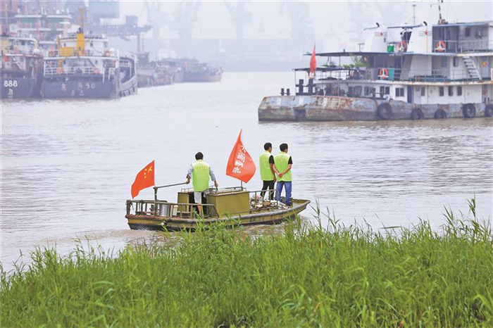 濱江村全村近5公里長江岸線,幾乎被碼頭擠占,僅剩申港河、新溝河兩處河道還能勉強窺見江水。“最早村民‘靠江吃江’以捕魚為生,后來密集的港區(qū)把村莊擠成了‘夾縫’。”跟著濱江村黨總支書記李建軍來到江邊,他的話語里滿是感慨,“好在長江大保護的‘風(fēng)’吹了過來,一場以生態(tài)為導(dǎo)向的搶救性修復(fù)在村里悄然鋪開。就算身處‘夾縫’,也要守好一江碧水,這早已是濱江村人的共同信念。”