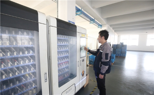 地塊不變,但產(chǎn)業(yè)鏈的延長(zhǎng)讓企業(yè)產(chǎn)能直接翻番。與此同時(shí),紫悅精密生產(chǎn)線的智能化水平也不斷提高。在生產(chǎn)車(chē)間內(nèi),一套外觀類(lèi)似自動(dòng)售賣(mài)機(jī)的排刀系統(tǒng)吸引了記者的關(guān)注。“兩側(cè)共配備100余種刀具,其中80余種為常規(guī)常用型號(hào),每一格都對(duì)應(yīng)專(zhuān)屬規(guī)格。”李青現(xiàn)場(chǎng)演示介紹,系統(tǒng)貼合機(jī)床精準(zhǔn)適配,可實(shí)現(xiàn)取刀、還刀、收刀、補(bǔ)刀全流程智能化操作,“自助式取用,輕點(diǎn)即可完成操作,既便捷又高效。”