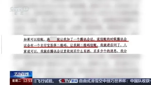 張某等人到了藥店后,需要和上游的人通過視頻會議的方式共享屏幕。由上游人員遠程操作展示動態(tài)醫(yī)保碼,才能完成盜刷購藥。