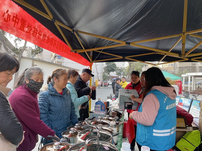 活動現(xiàn)場,工作人員與志愿者通過設(shè)立咨詢臺、發(fā)放宣傳手冊、面對面講解等方式,向居民詳細普及垃圾分類的重要性和具體分類方法。為鼓勵居民積極參與,活動特別推出了“廢舊物品兌換積分,積分換取實用禮品”的惠民舉措。居民們紛紛將家中的舊報紙、塑料瓶、廢舊織物等可回收物帶到現(xiàn)場,經(jīng)網(wǎng)格員稱重登記后累積積分,兌換到了紙巾、垃圾袋、保溫杯、不銹鋼鍋等日常生活用品。這種“變廢為寶”的形式極大地調(diào)動了居民的積極性。